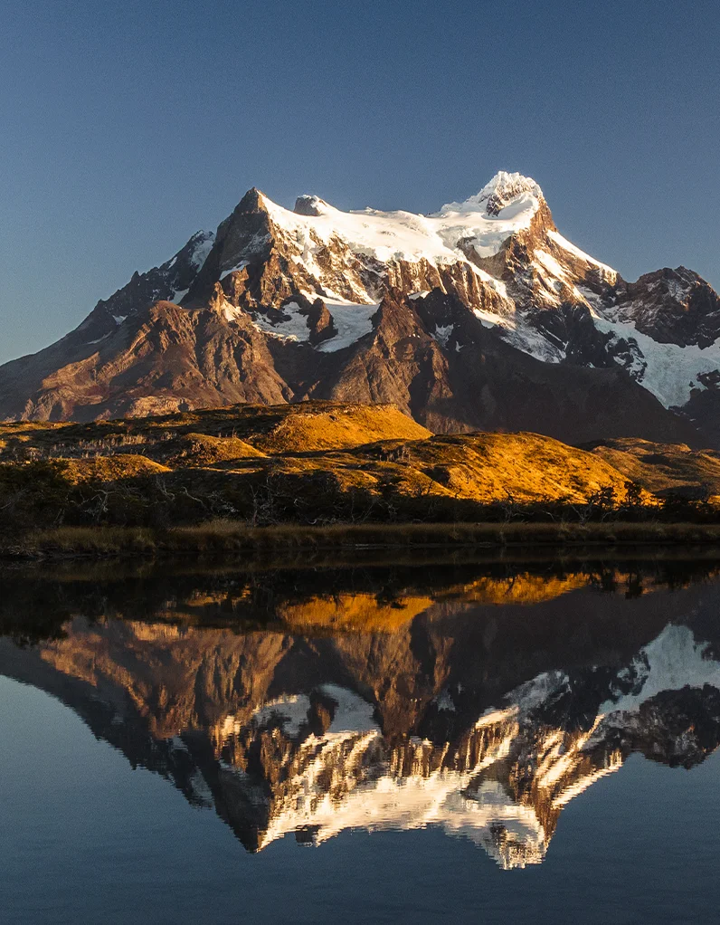 Entre montanhas e águas glaciais da Patagônia, surge um reflexo tão puro que parece dissolver o tempo.
